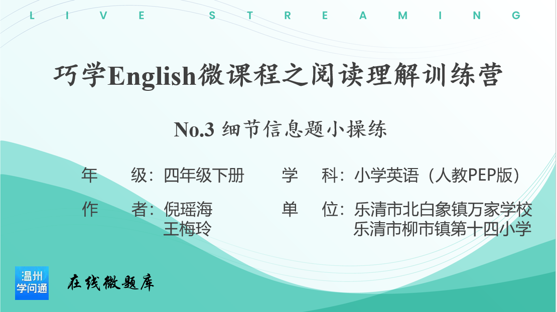 责任教师:倪瑶海 王梅玲 单位机构:温州市教育局