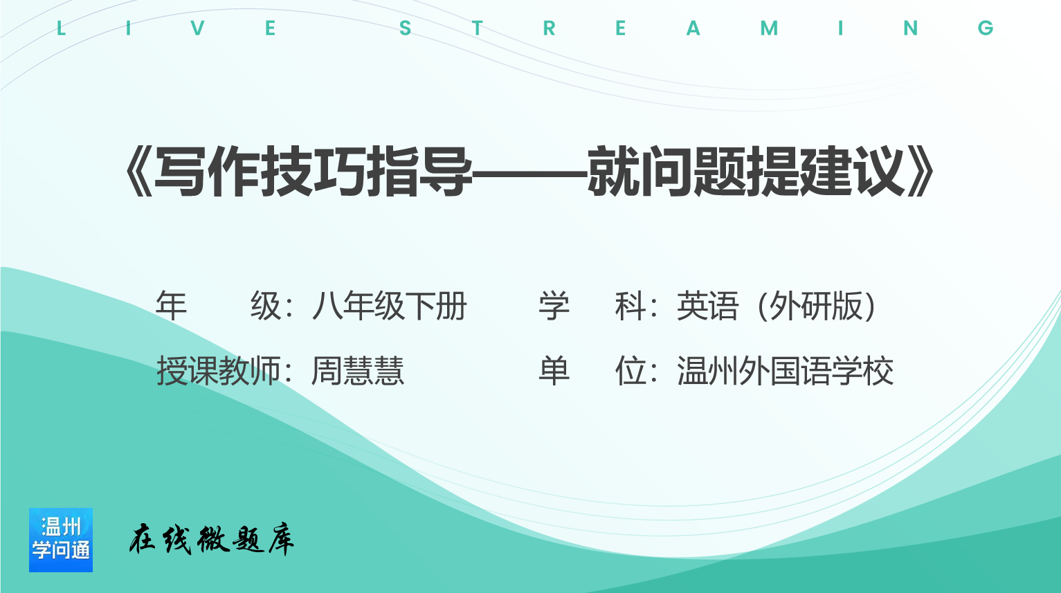 课程名称:8BM4 写作技巧指导——就问题提建议