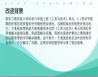 我学了教科版小学科学六年级上册《工具与技术》单元,5.1劳动节假期的时候回老家看到爷爷摘枇杷给我吃,当摘较高处的枇杷时相当吃力。于是我就想我能不能根据我学过的《工具与技术》单元利用杠杆原理解决高度问题,用斜面解决采摘,用雨伞面来护果防止果肉摔烂的问题来帮助爷爷解决摘果。说干就干,于是我找来生活中的材料开始设计。不仅解决了问题,还带回学校跟同学分享了我的成果。