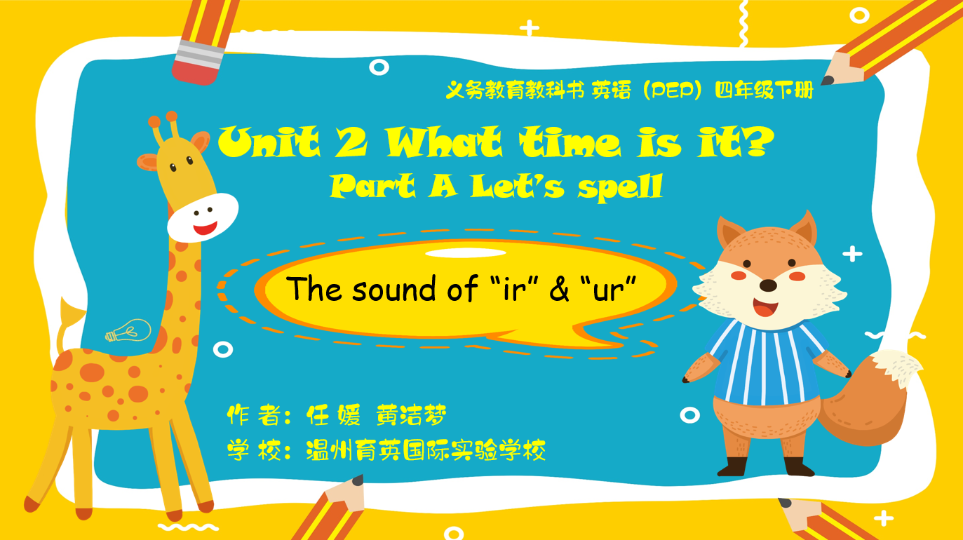 本作品包含Fun to chant, Fun to spell和Fun to read三个部分,分别从梳理字母组合ir和ur的发音规律、完成自主试拼和听音拼词活动以及阅读相关知识点拓展绘本三个方面帮助学生巩固本单元字母组合“ir”“ur”的发音知识,提高学生拼读符合发音规则的单词的能力,使其做到“见词能读”、“听音能写”。