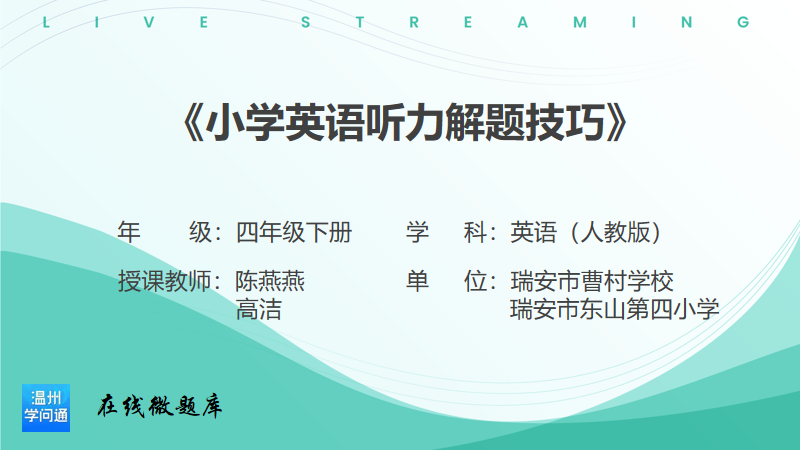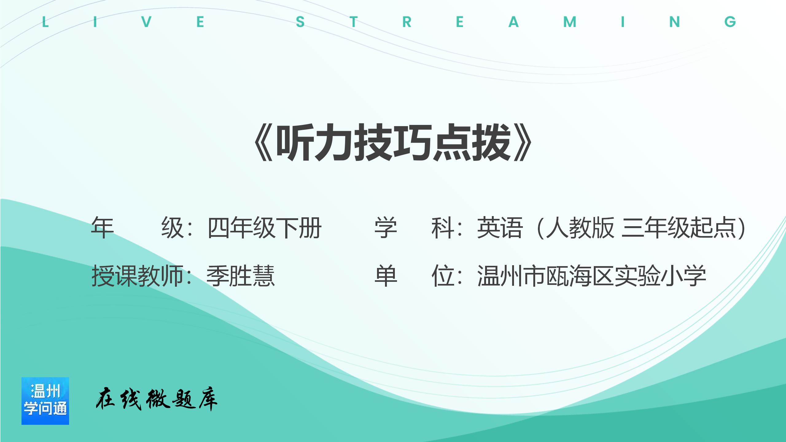 本系列视频讲解内容面向四年级下册的学生。结合PEP小学英语四年级下册英语书、配套课堂作业本和考试真题的听力题型,从听前、听中、听后三个部分,详细介绍一些听力技巧和方法,帮助学生更好地理解和应对听力考试或日常听力练习。