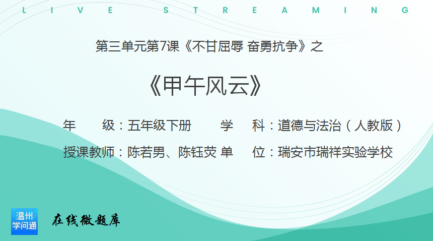 视频以抗日战争为载体,通过史实带领学生回顾中华民族近代那段遭受深重苦难和屈辱的历史,通过奋勇抗争和的事实使学生体会中华民族顽强的革命精神与抗战精神,感受中华民族伟大的爱国主义情怀的传承,并树立奋发图强的爱国志向。